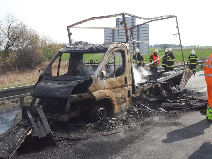STŘEDOČESKÝ KRAJ – K nahlášenému požáru dodávky převážející prázdné rakve a urny vyjely jednotky HZS Zruč nad Sázavou a v rámci mezikrajské výpomoci HZS Humpolec (VYS) Dodávka byla požárem zcela zničena a částečně i těleso dálnice. V průběhu zásahu byla dálnice zcela uzavřena. Zdroj : HZS Středočeského kraje