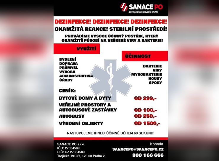 TIP REDAKCE: Potřebujete odbornou dezinfekci prostor? Obraťte se raději na profesionály ze SANACE PO