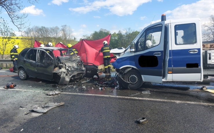 TRAGÉDIE: Střet s dodávkou na Strakonicku nepřežila řidička osobního automobilu! To po nárazu začalo hořet…