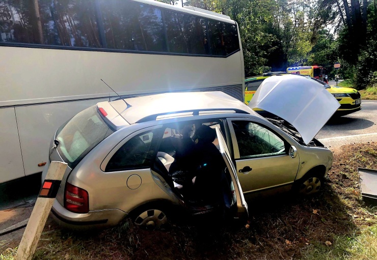 OBRAZEM: Na Táborsku se střetl autobus s osobním automobilem! Jeho řidič nehodu nepřežil