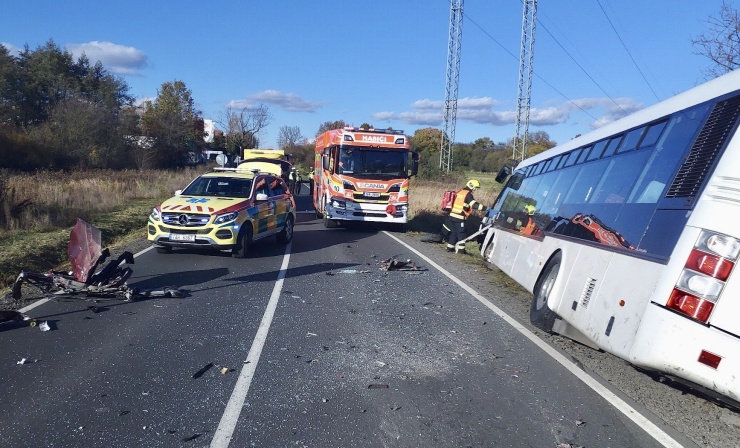 Při střetu autobusu s osobním automobilem v Běchovicích se zranili dva lidé