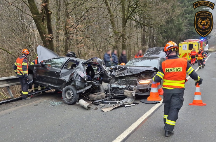 Pět lidí se zranilo při čelním střetu dvou osobních aut u Javorníku