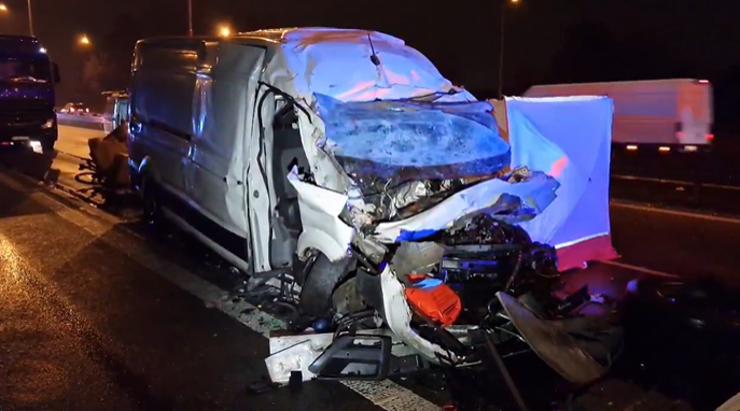TRAGÉDIE: Dva lidé zemřeli v dodávce po ranním střetu s kamionem na dálnici D1 u Brna