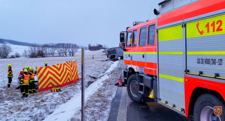 AKTUÁLNĚ TRAGÉDIE: Při čelním střetu nákladního a osobního automobilu na Havlíčkobrodsku zemřel řidič z havarovaného osobního vozidla