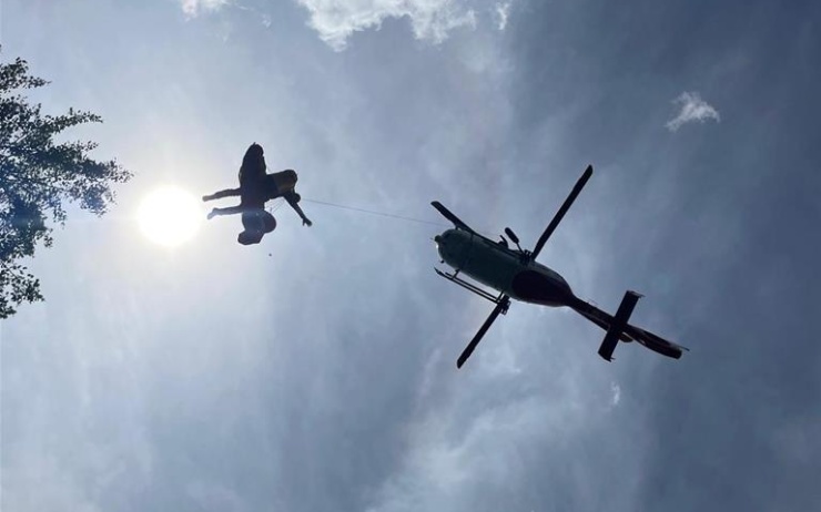 Vrtulník zachraňoval zraněného turistu u Rešovských vodopádů na Bruntálsko