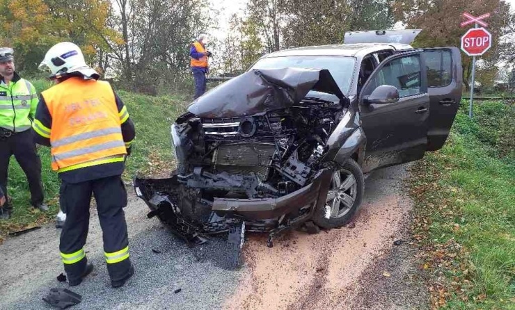 Na železničním přejezdu v Hrušové se střetl vlak s osobním autem! Nehoda se naštěstí obešla bez vážného zranění