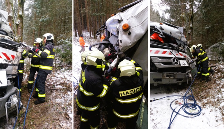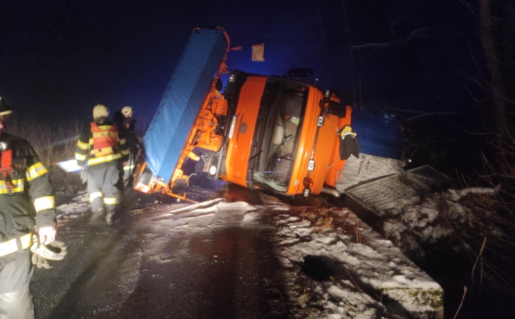 U Vyššího Brodu na Českokrumlovsku havaroval řidič posypového vozu a skončil s vozem na boku